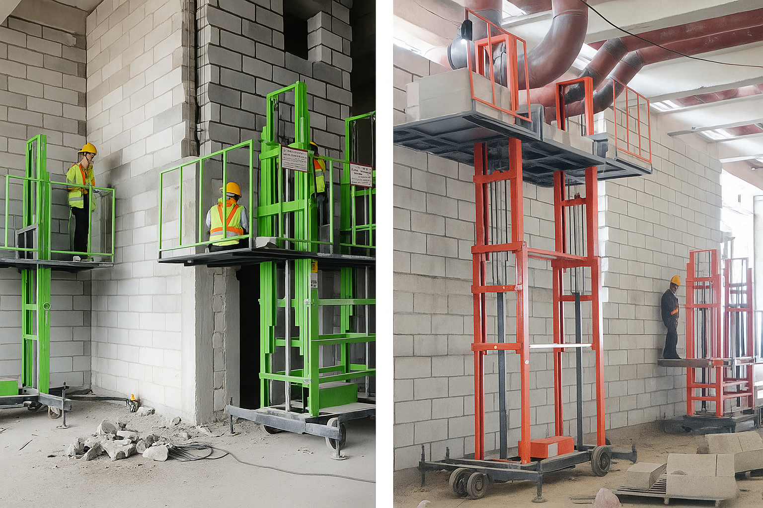 A plataforma elevatória de andaime é amplamente utilizada para transportar materiais como tijolos, blocos de concreto, etc., verticalmente, para trabalhadores em canteiros de obras e construções.