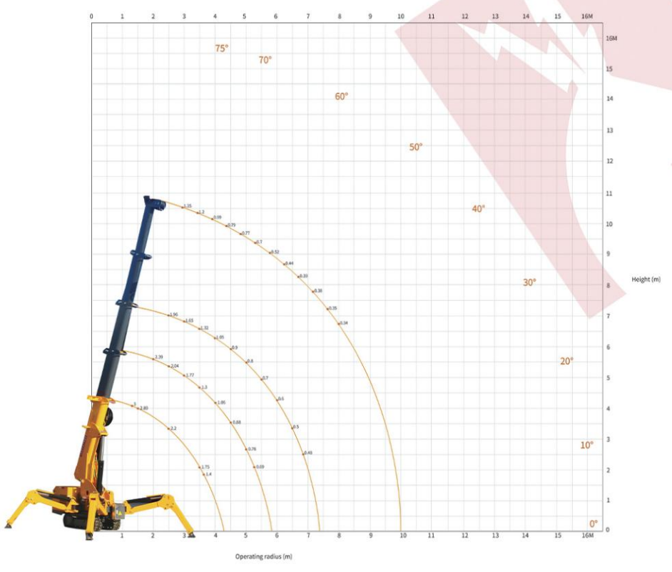 Raio máximo de trabalho: 7,8 m (200 kg)
