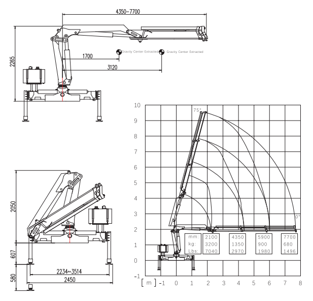 Capacidade máxima de elevação: 3,2 toneladas (680 kg @ 7,7 m)