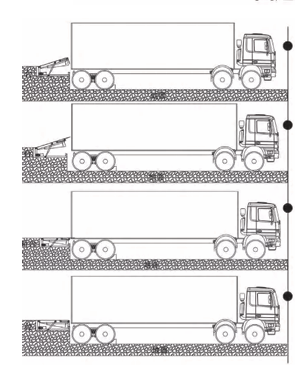 Nesse momento, a aba fica em posição horizontal, acompanhando a plataforma enquanto ela retorna automaticamente, até ficar nivelada com o compartimento do veículo.