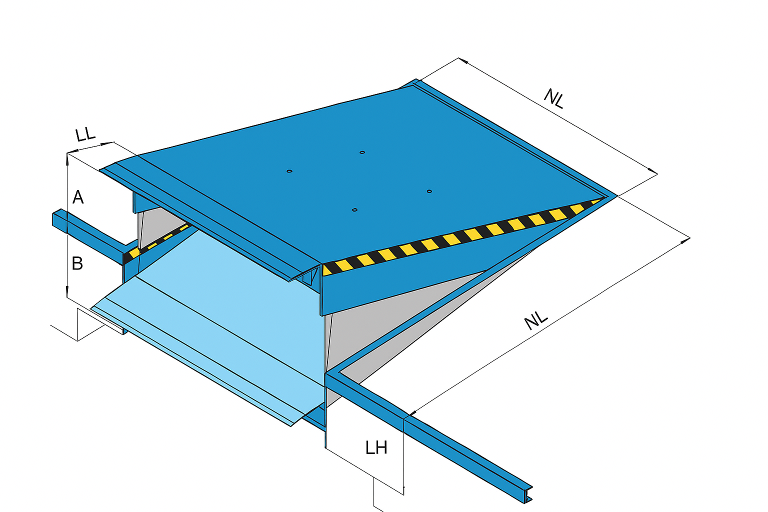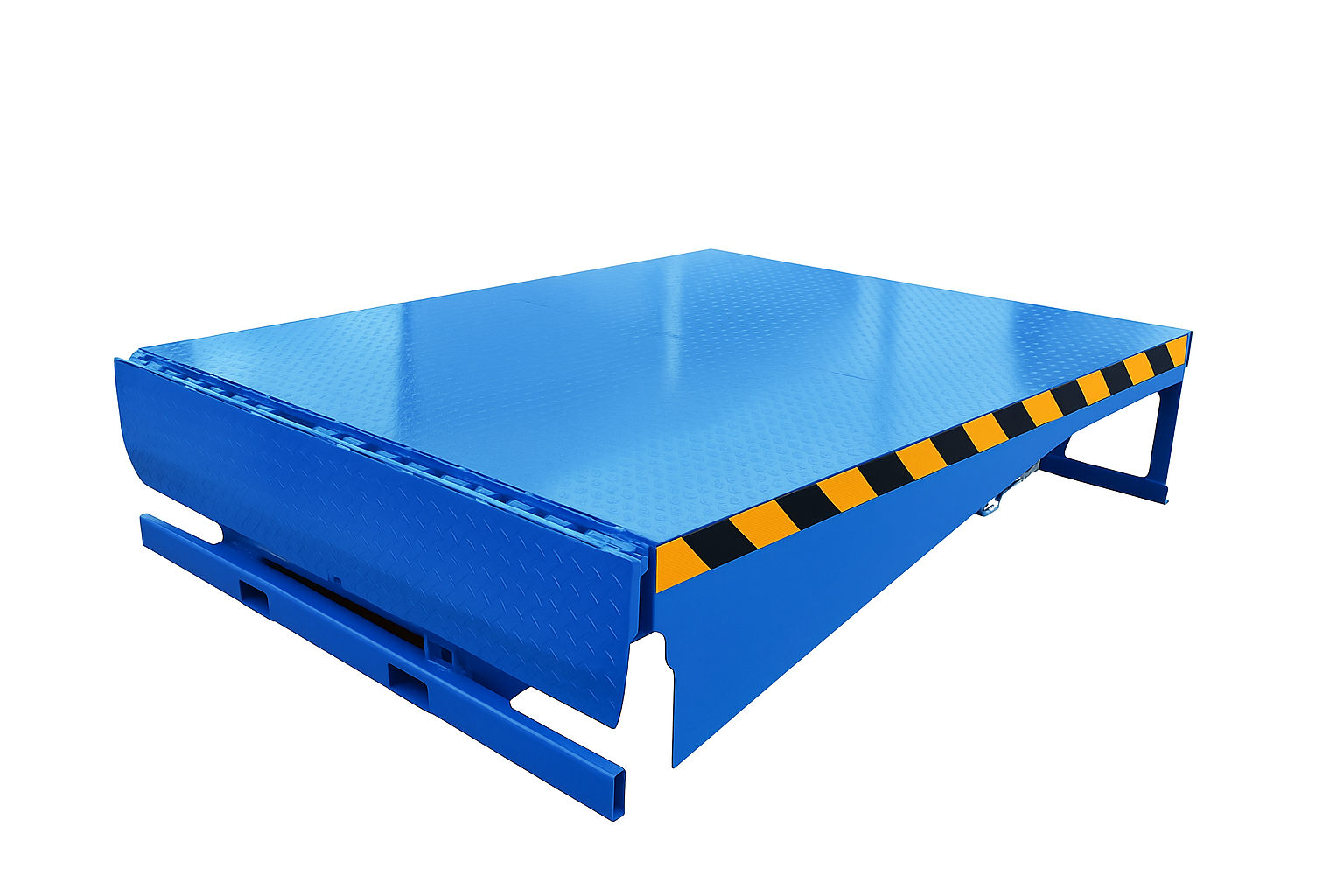 Ele é instalado na borda da doca ou plataforma de carga e ajusta sua altura para preencher o espaço entre a doca e o veículo de transporte, garantindo que empilhadeiras ou outros equipamentos de movimentação de carga possam entrar e sair com segurança e suavidade, facilitando o manuseio de mercadorias.